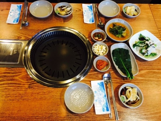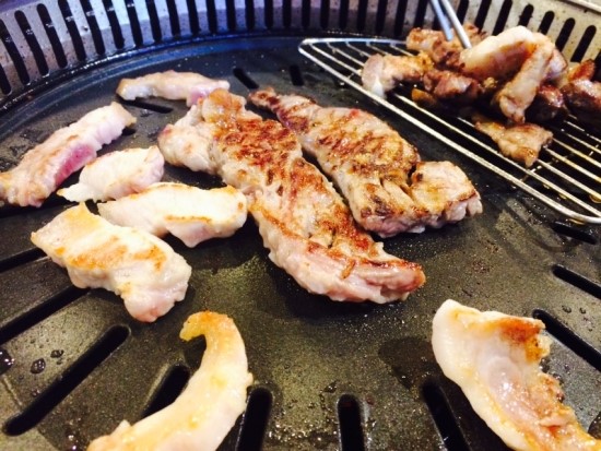 맛있게 구워서 익은 고기는 선반에 두고