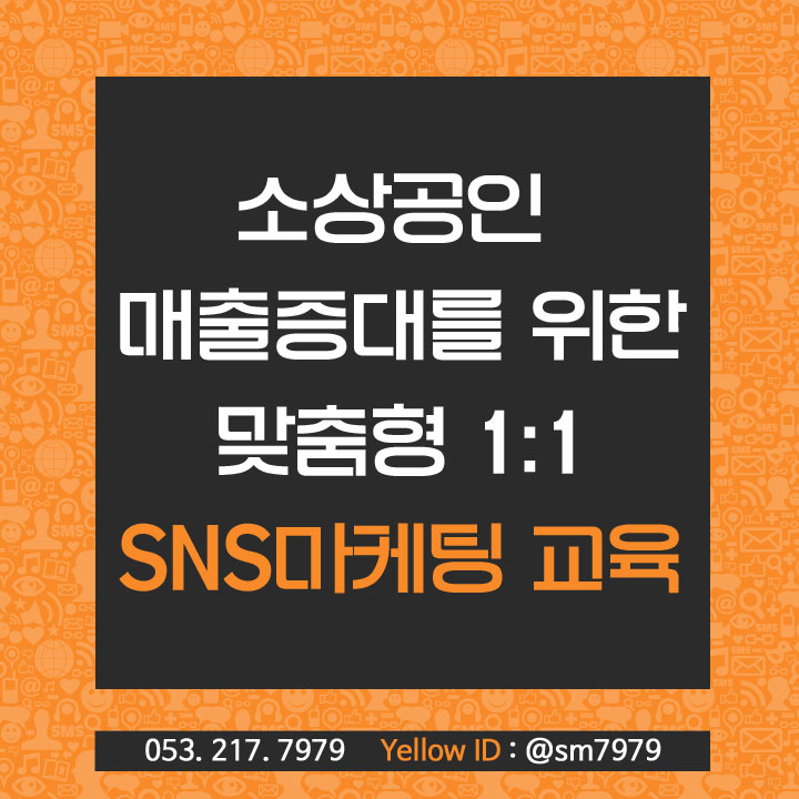 소상공인매출증대 1:1맞춤형교육 개강일 :2016년 05월 01일(일) ~ 2016년 12월 31일(토) 교육시간: 편하신시간으르로 조율(1회마다2시간) 수강료: 350,000원 문의 : 053-217-7979 종료
