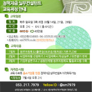 정책자금실무컨설턴트양성과정교육 개강일 :2016년 09월 25일(일) ~ 2016년 12월 31일(토) 교육시간: 매주일요일2시~오후6시(4시간) 3회과정 수강료: 400,000원 문의 : 053-217-7979 종료
